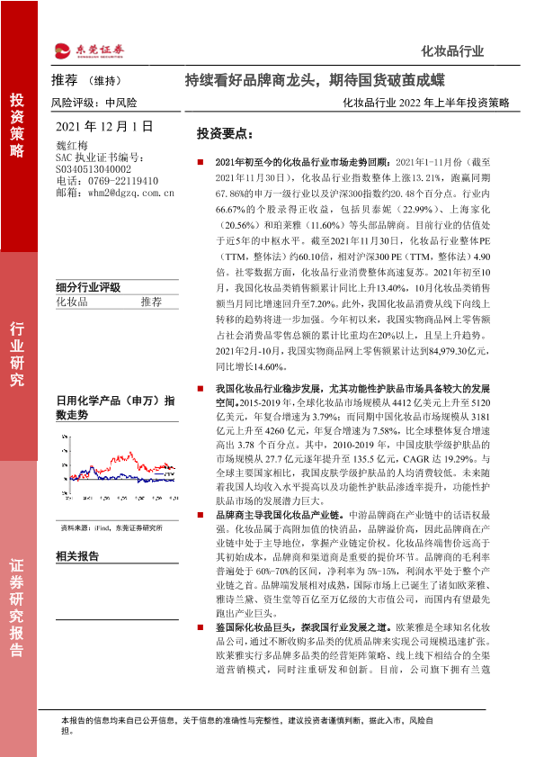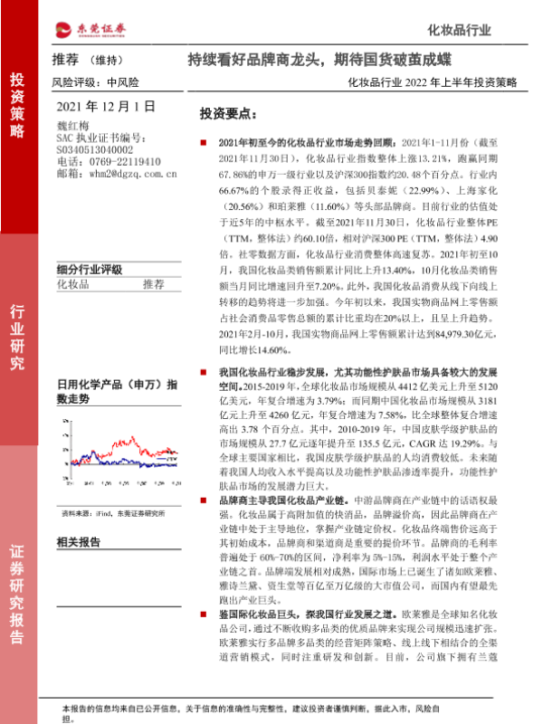 【东莞证券】【20211201】化妆品行业2022年上半年投资策略:持续看好品牌商龙头,期待国货破茧成蝶-29页