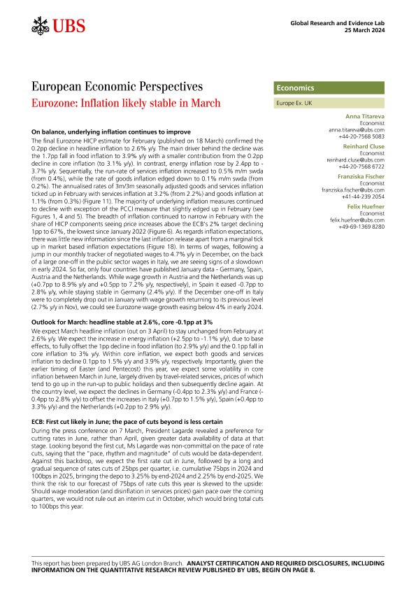 【UBS AG London Branch】【20240325】European Economic Perspectives Eurozone Inflation likely stable in March-11页