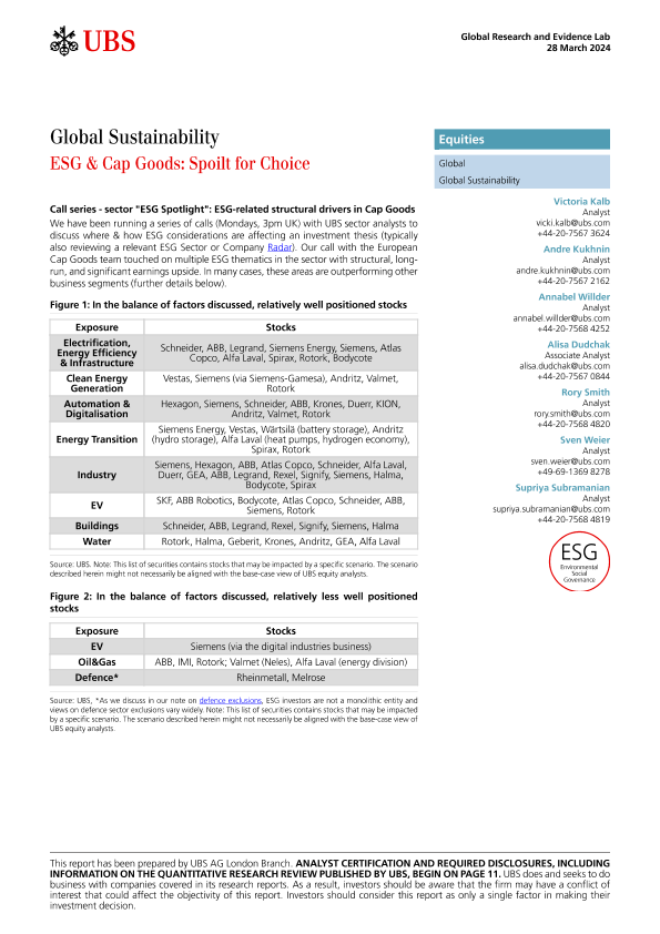 【UBS AG London Branch】【20240328】全球可持续性 - ESG与资本货物:选择丰富-16页