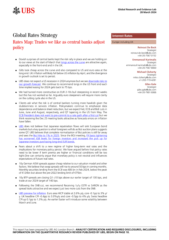 【UBS AG London Branch】【20240328】UBS Fixed Income-Global Rates Strategy Rates Map Trades we like as central banks adjust policy-14页