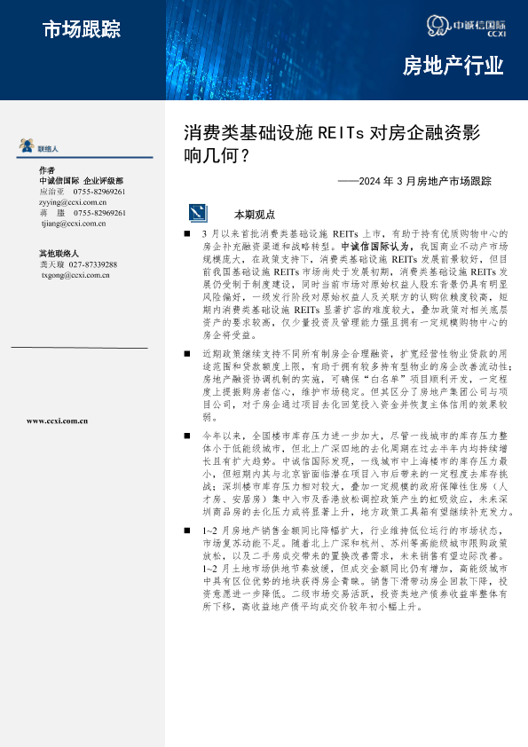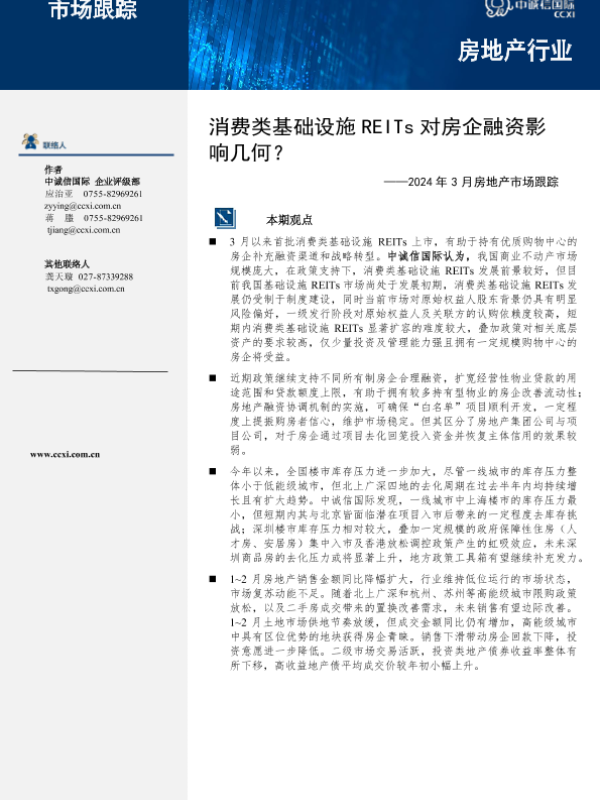 【中诚信国际】【20240301】【房地产行业月报】消费类基础设施REITs对房企融资影响几何?-8页