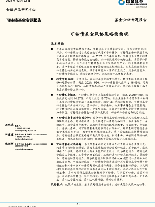 【国金证券】【20211202】可转债基金专题报告:可转债基金风格策略面面观-30页