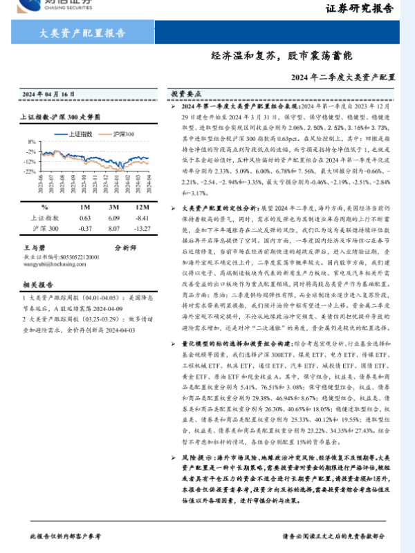 【财信证券】【20240416】2024年二季度大类资产配置:经济温和复苏,股市震荡蓄能-30页