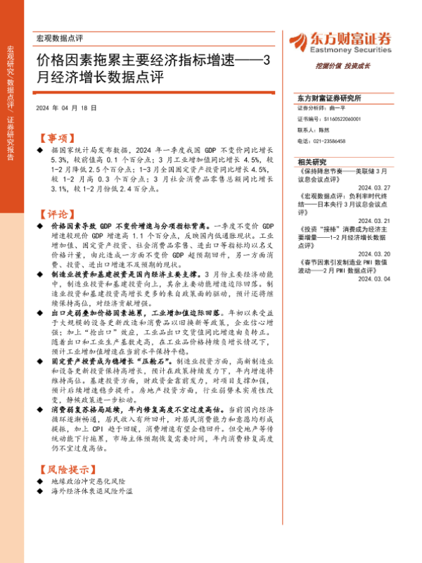 【东方财富证券】【20240418】3月经济增长数据点评:价格因素拖累主要经济指标增速-10页
