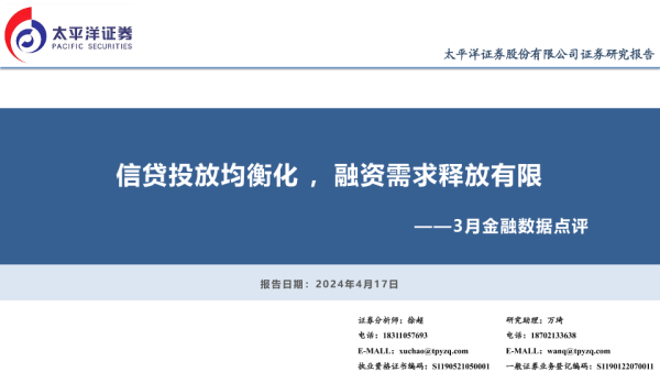 【太平洋证券】【20240417】3月金融数据点评:信贷投放均衡化,融资需求释放有限-15页
