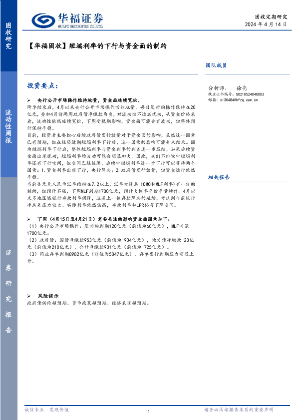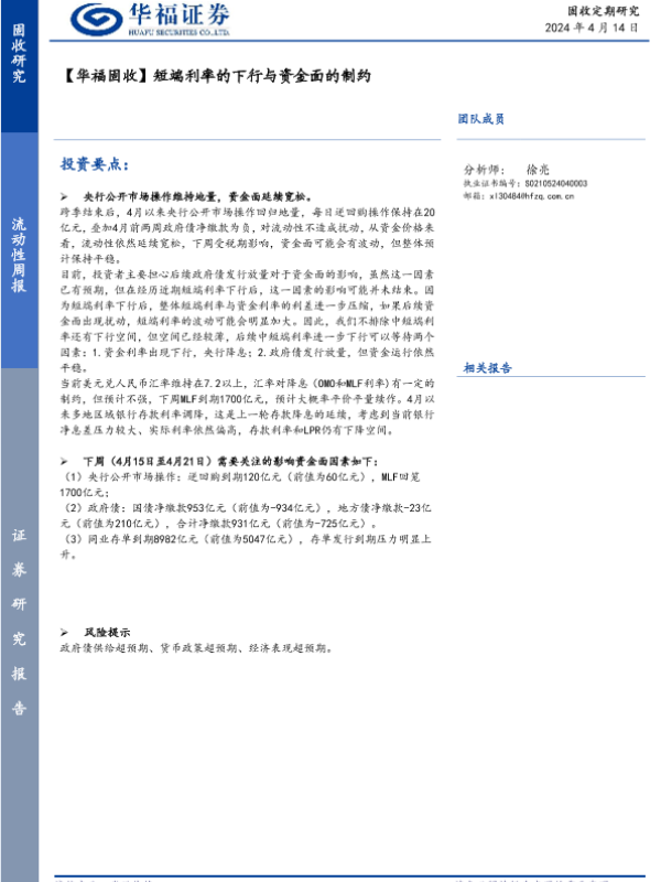 【华福证券】【20240414】【华福固收】短端利率的下行与资金面的制约-15页