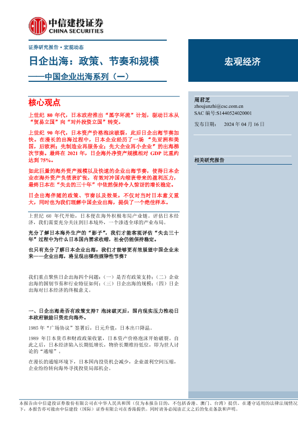 【中信建投证券】【20240416】中国企业出海系列(一),日企出海:政策、节奏和规模-21页