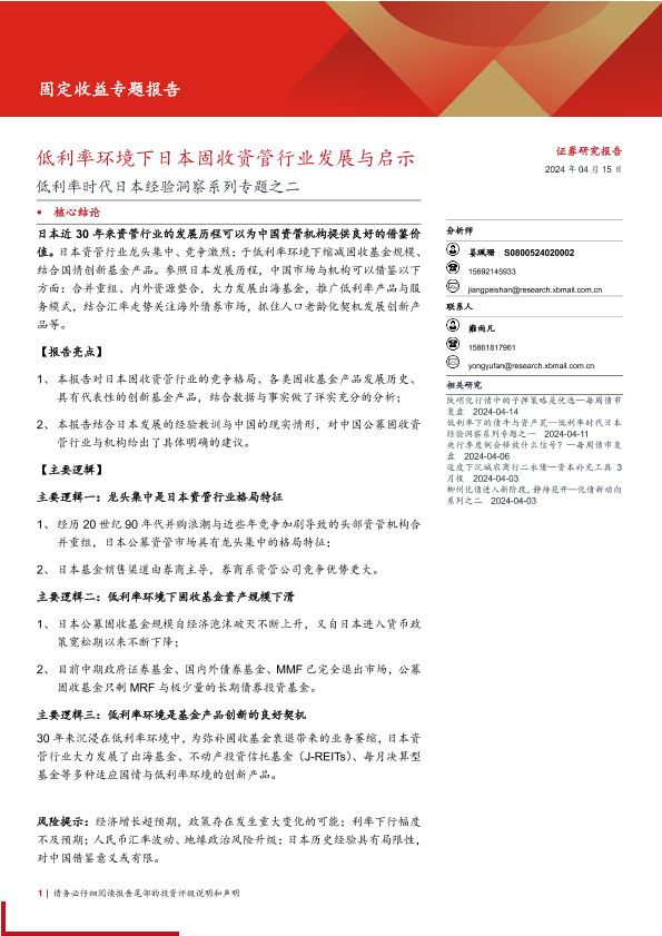 【西部证券】【20240415】低利率环境下日本固收资管行业发展与启示-18页
