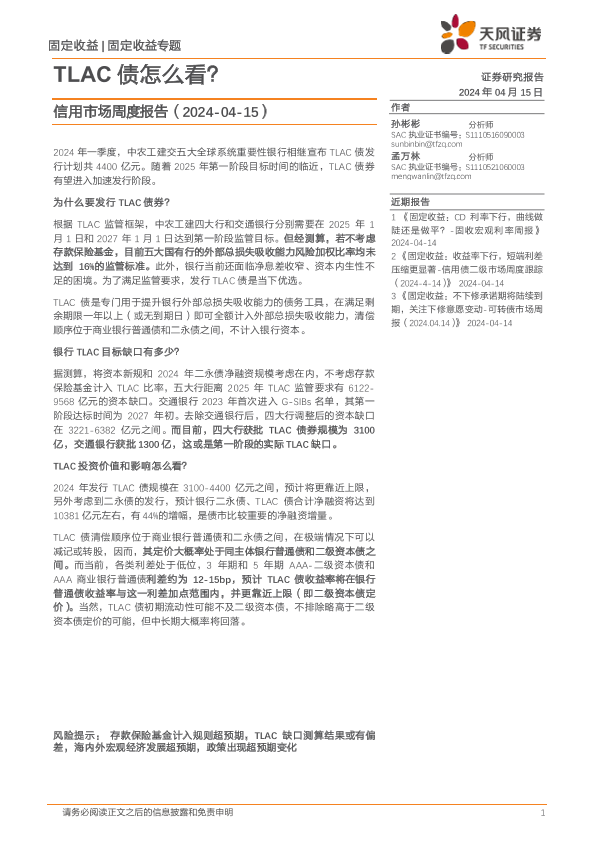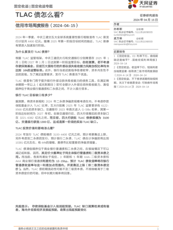 【天风证券】【20240415】信用市场报告:TLAC债怎么看?-13页