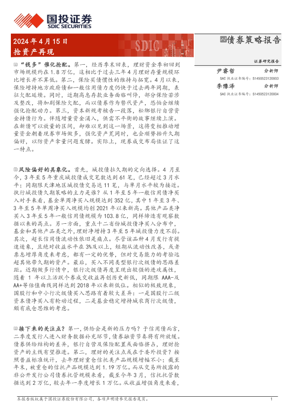 【国投证券】【20240415】债券策略报告:抢资产再现-17页
