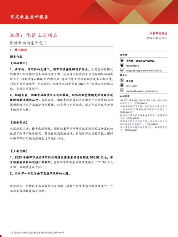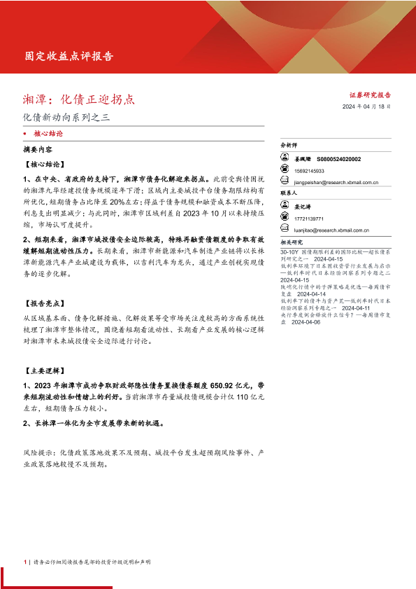 【西部证券】【20240418】化债新动向系列之三-湘潭:化债正迎拐点-10页