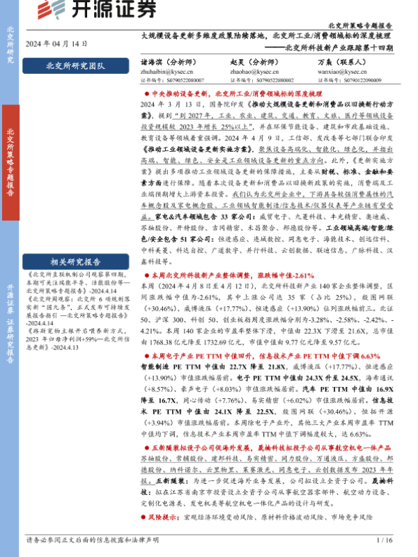 【开源证券】【20240414】北交所科技新产业跟踪第十四期:大规模设备更新多维度政策陆续落地,北交所工业消费领域标的深度梳理-16页