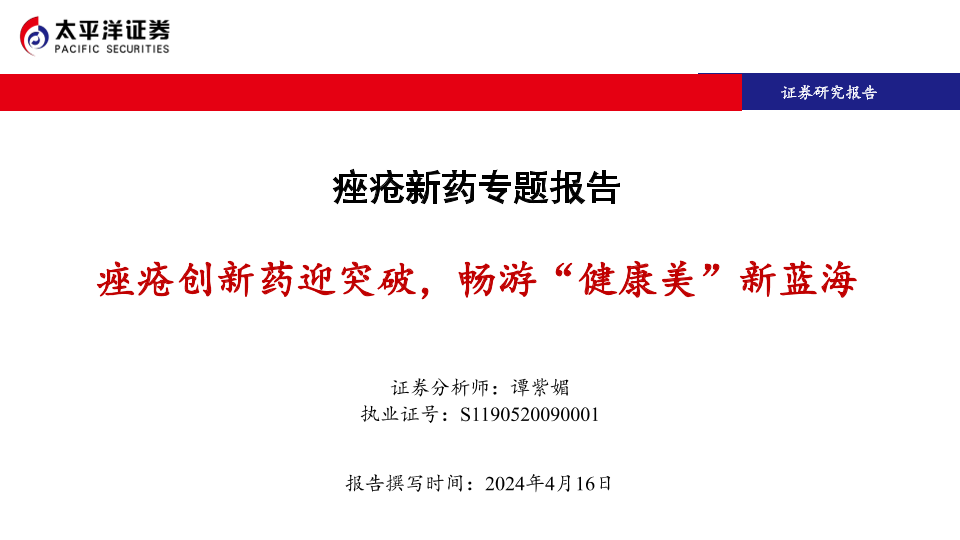 【太平洋证券】【20240416】医药行业痤疮新药专题报告:痤疮创新药迎突破,畅游“健康美”新蓝海-26页