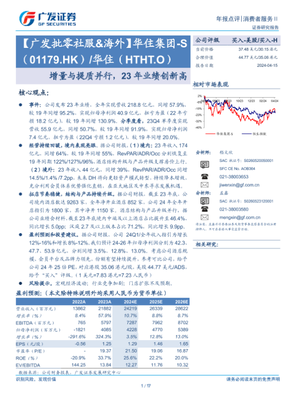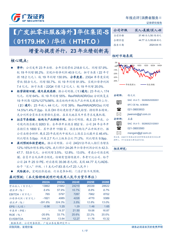 【广发证券】【20240415】华住集团-S(01179.HK)增量与提质并行,23年业绩创新高-17页