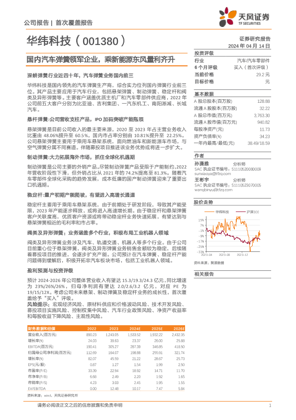 【天风证券】【20240414】华纬科技-001380.SZ-国内汽车弹簧领军企业,乘新能源东风量利齐升-20页