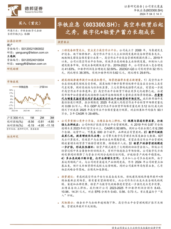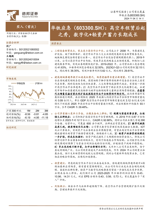 【德邦证券】【20240414】华铁应急-603300.SH-高空车租赁后起之秀,数字化+轻资产蓄力长期成长-43页