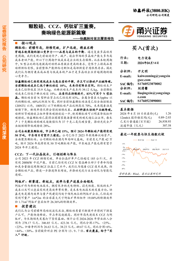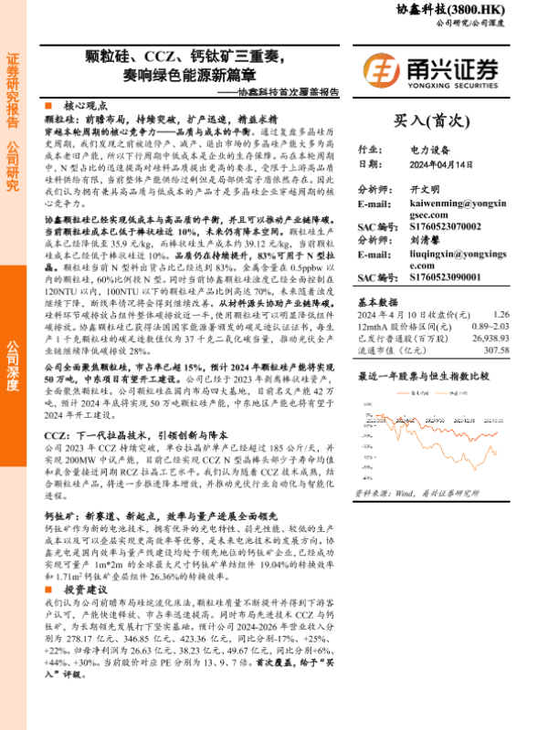【甬兴证券】【20240414】协鑫科技(3800.HK)首次覆盖报告:颗粒硅、CCZ、钙钛矿三重奏,奏响绿色能源新篇章-32页