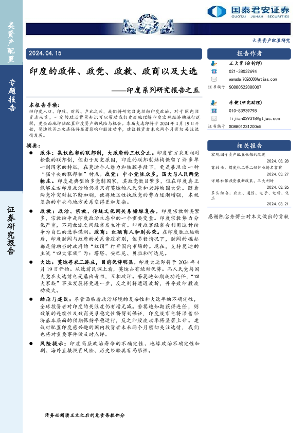 【国泰君安证券】【20240415】印度的政体、政党、政教、政商以及大选-12页