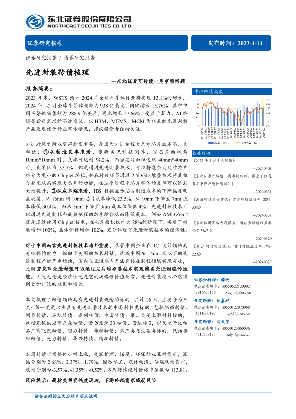 【东北证券】【20230414】可转债市场回顾:先进封装转债梳理-14页