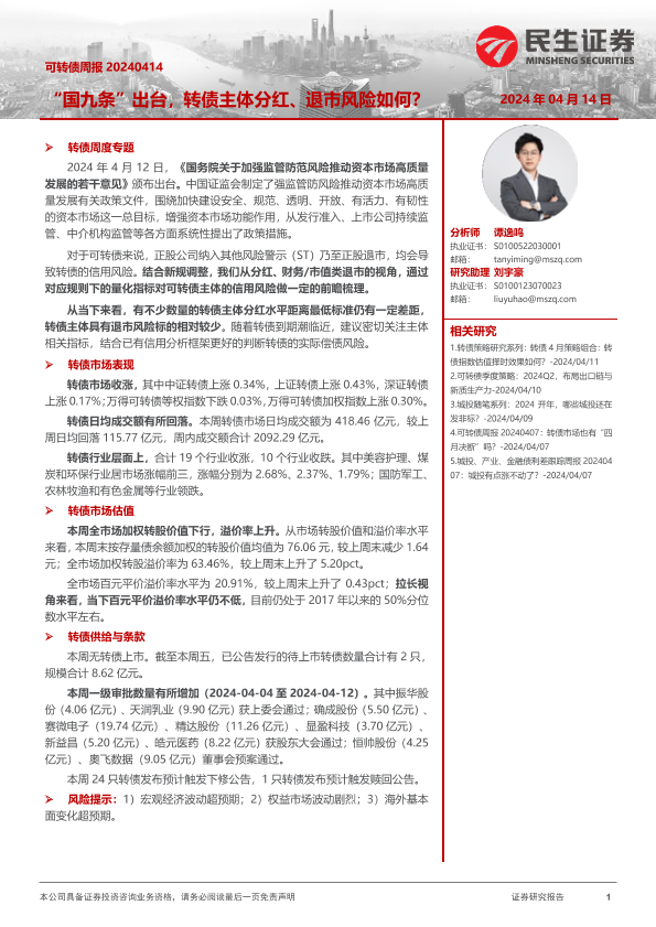 【民生证券】【20240414】可转债:“国九条”出台,转债主体分红、退市风险如何?-21页