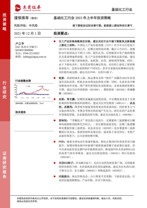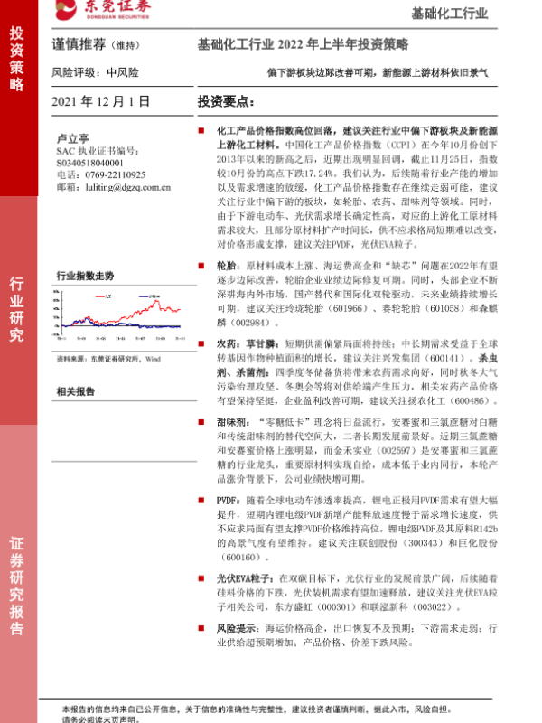 【东莞证券】【20211201】基础化工行业2022年上半年投资策略:偏下游板块边际改善可期,新能源上游材料依旧景气-19页