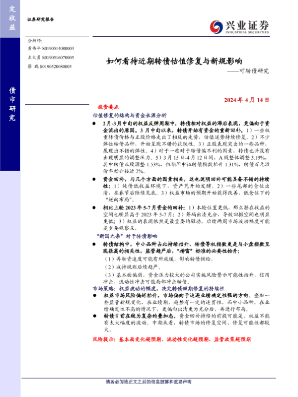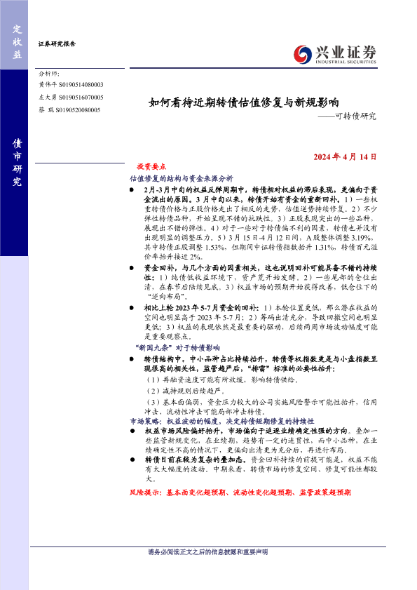 【兴业证券】【20240414】如何看待近期转债估值修复与新规影响-13页