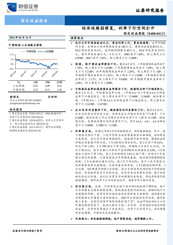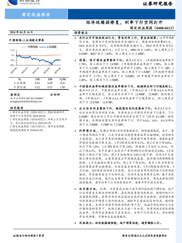 【财信证券】【20240416】固定收益(0408-0412):经济延续弱修复,利率下行空间打开-10页