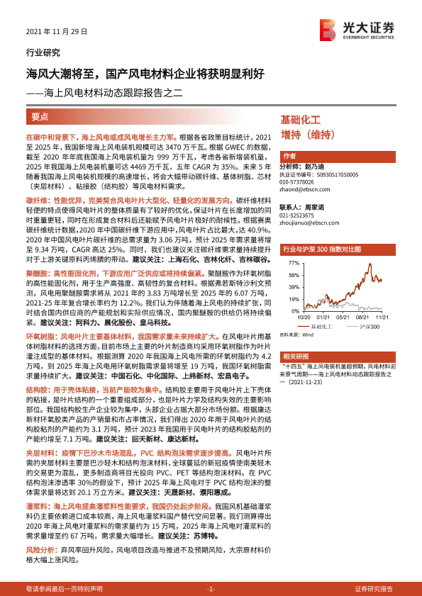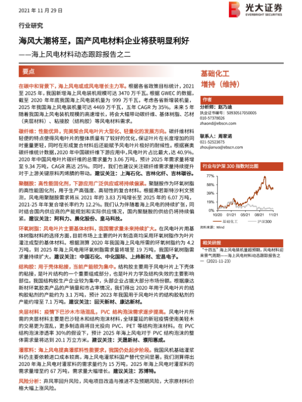 【光大证券】【20211129】基础化工行业海上风电材料动态跟踪报告之二:海风大潮将至,国产风电材料企业将获明显利好-28页