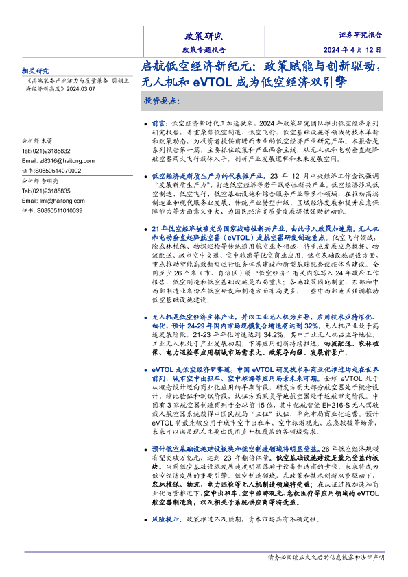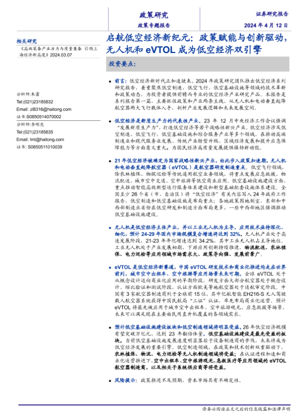 【海通证券】【20240412】启航低空经济新纪元:政策赋能与创新驱动,无人机和eVTOL成为低空经济双引擎-26页