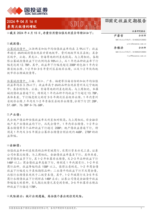 【国投证券】【20240416】固定收益定期报告:券商次级债的增配-19页