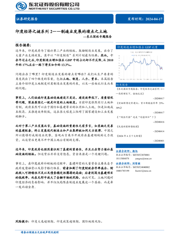 【东北证券】【20240417】印度经济之谜系列2:制造业发展的堵点之土地-14页