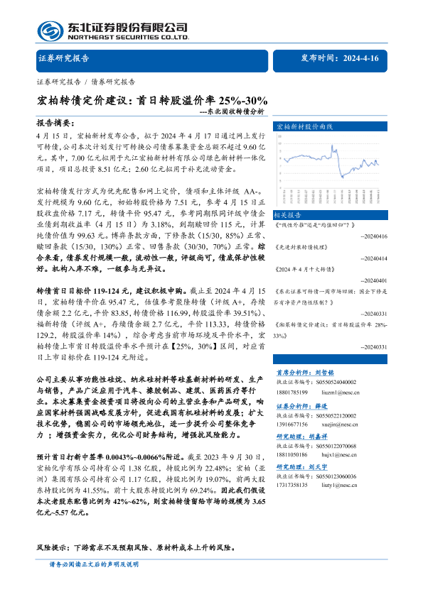 【东北证券】【20240416】固收转债分析-宏柏转债定价建议:首日转股溢价率25%-30%-12页