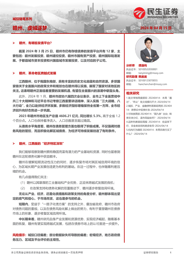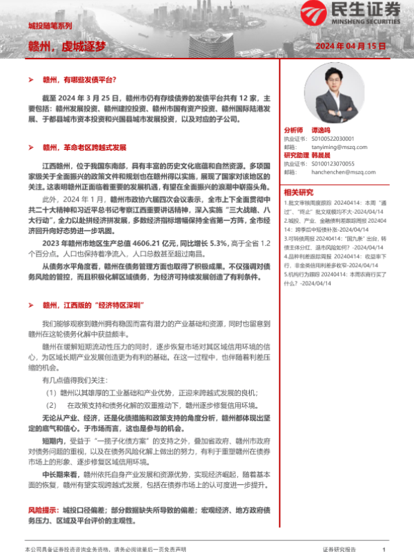 【民生证券】【20240415】城投随笔系列:赣州,虔城逐梦-22页