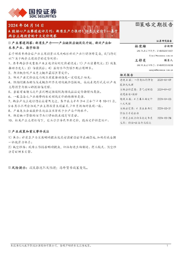 【国投证券】【20240414】基于两会主题投资的十大定价观察-A股核心产业赛道述评月刊:新质生产力很好!但怎么定价?-45页