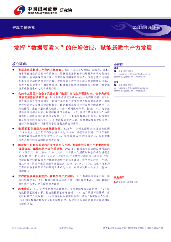 【银河证券】【20240416】发挥“数据要素×”的倍增效应,赋能新质生产力发展-10页