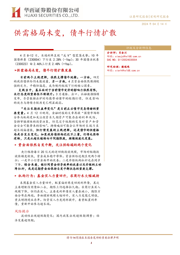 【华西证券】【20240414】宏观研究报告:供需格局未变,债牛行情扩散-26页