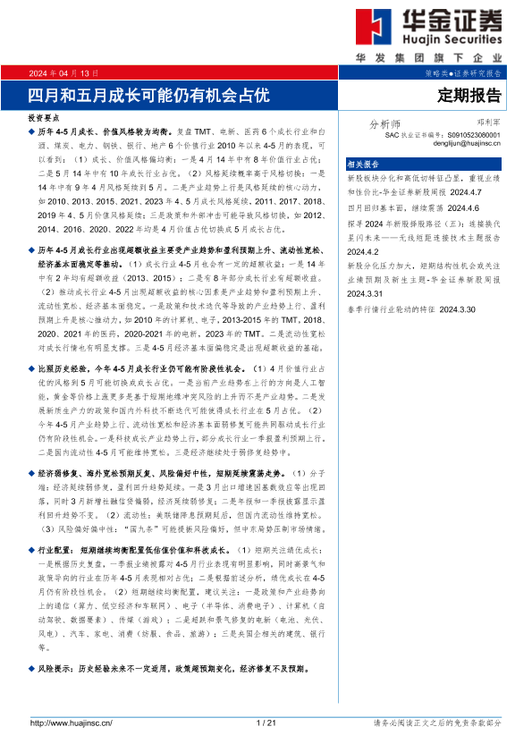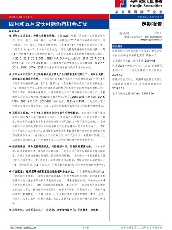 【华金证券】【20240413】定期报告:四月和五月成长可能仍有机会占优-21页