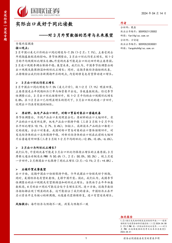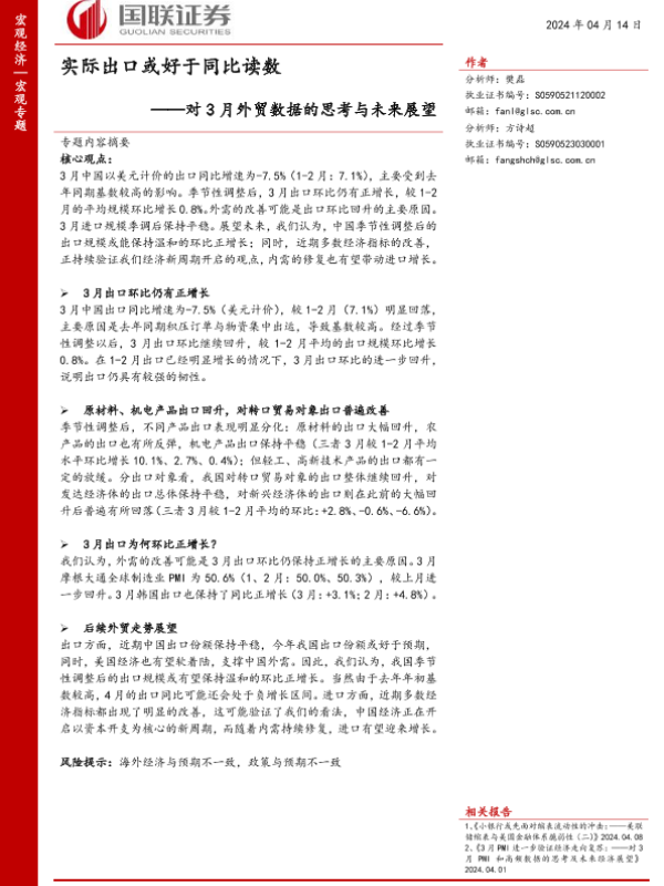 【国联证券】【20240414】对3月外贸数据的思考与未来展望:实际出口或好于同比读数-12页