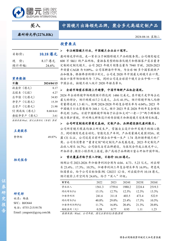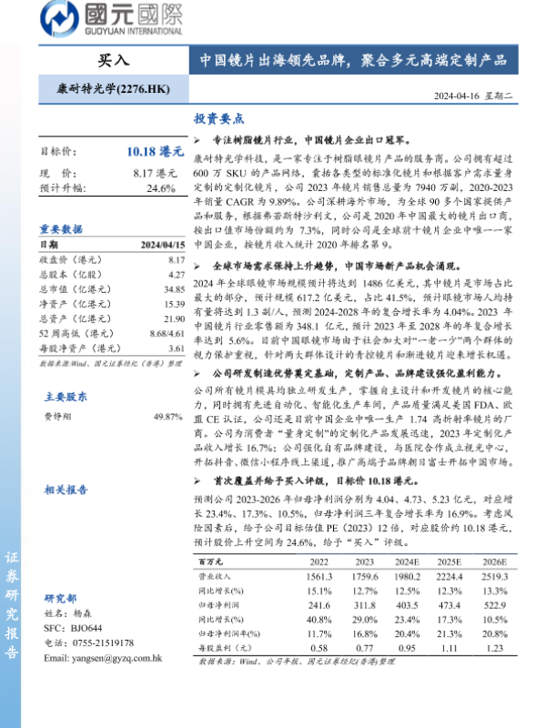 【国元国际】【20240416】康耐特光学(2276.HK)中国镜片出海领先品牌,聚合多元高端定制产品-39页