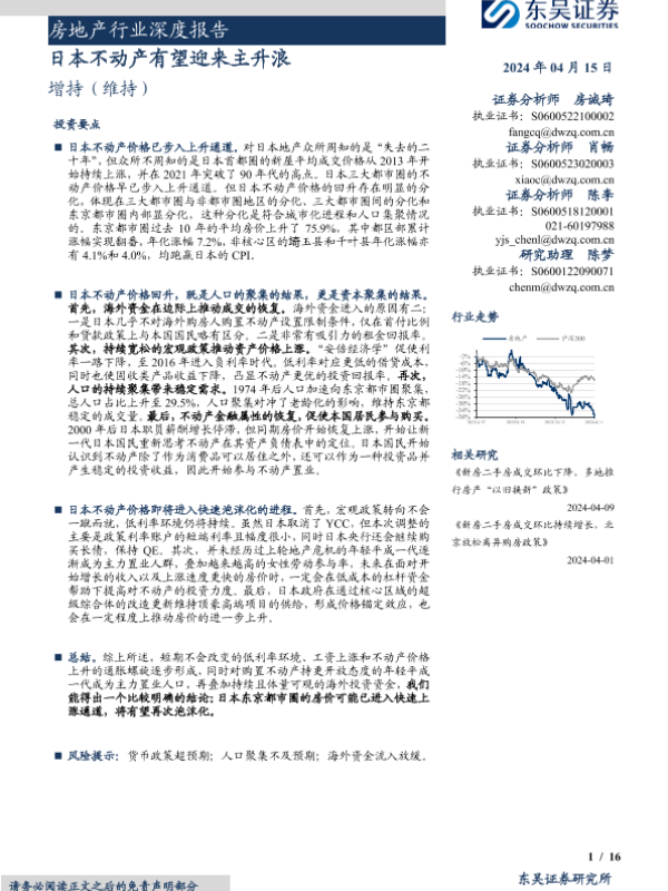 【东吴证券】【20240415】房地产行业深度报告:日本不动产有望迎来主升浪-16页