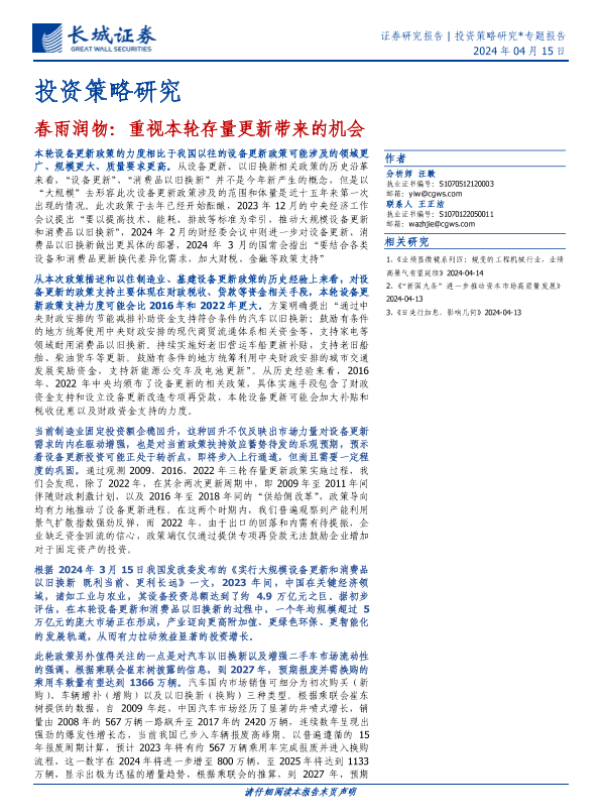 【长城证券】【20240415】春雨润物:重视本轮存量更新带来的机会-14页