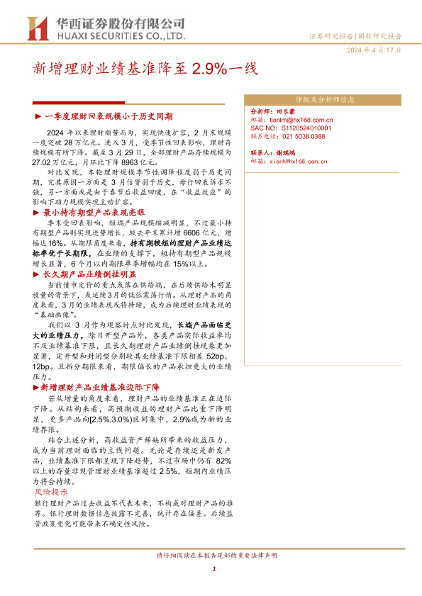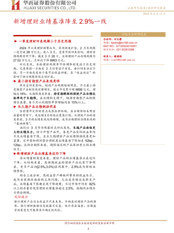 【华西证券】【20240417】新增理财业绩基准降至2.9%一线-18页