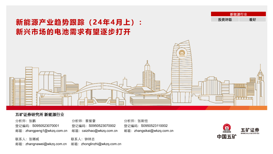 【五矿证券】【20240418】新能源行业产业趋势跟踪(24年4月上) 新兴市场的电池需求有望逐步打开-48页