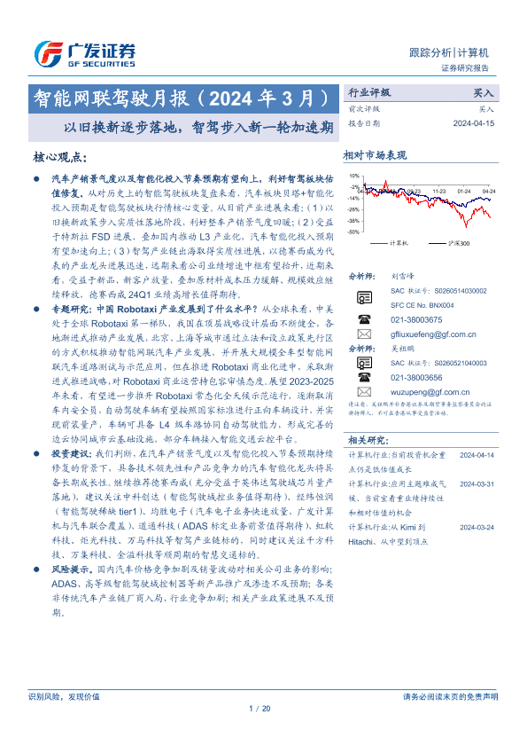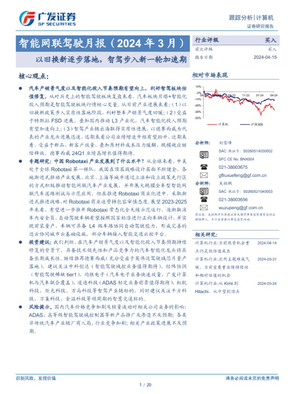 【广发证券】【20240415】智能网联驾驶行业月报(2024年 3月):以旧换新逐步落地,智驾步入新一轮加速期-20页