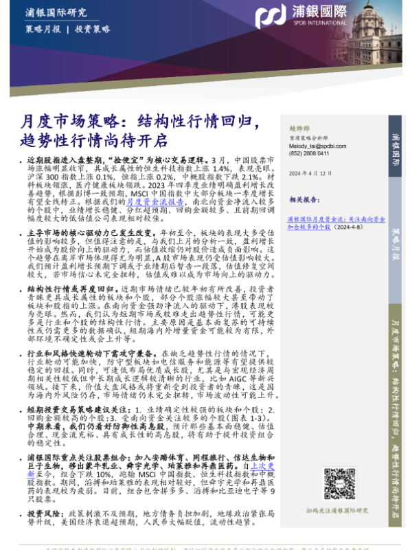 【浦银国际】【20240412】月度市场策略:结构性行情回归,趋势性行情尚待开启-29页