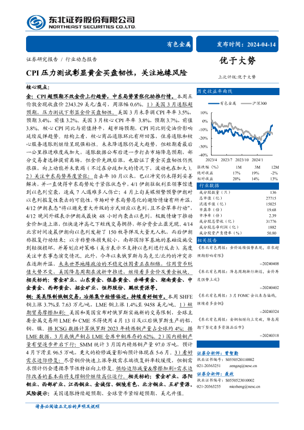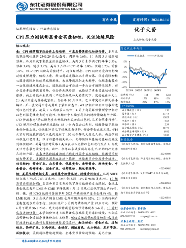 【东北证券】【20240414】有色金属行业动态报告:CPI压力测试彰显黄金买盘韧性,关注地缘风险-24页