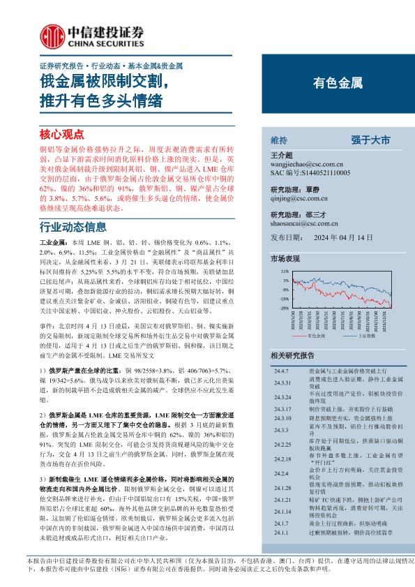 【中信建投证券】【20240414】有色金属行业:俄金属被限制交割,推升有色多头情绪-12页