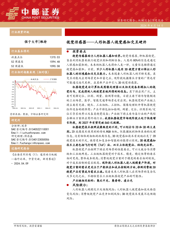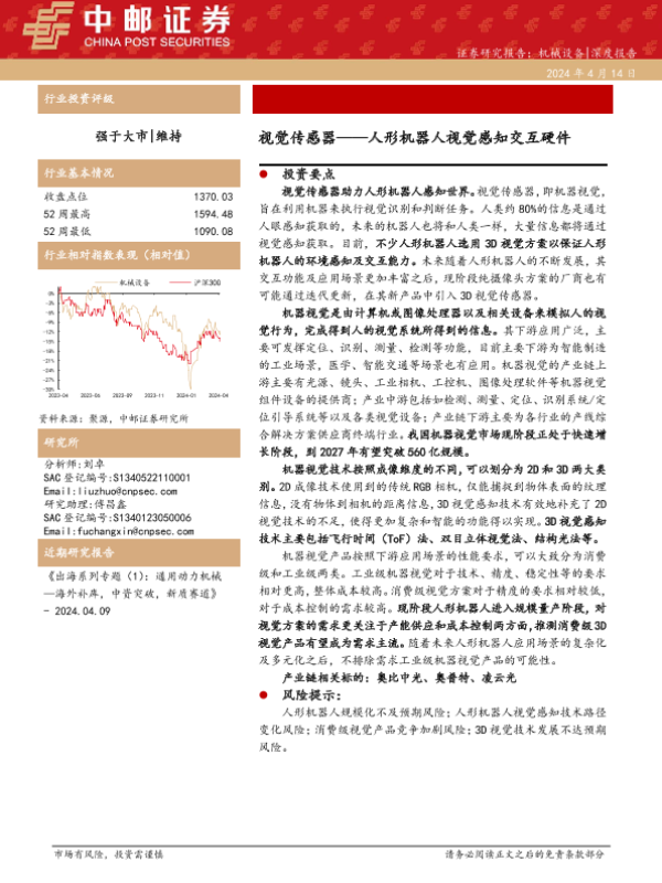 【中邮证券】【20240414】机械设备行业深度报告:视觉传感器-人形机器人视觉感知交互硬件-18页