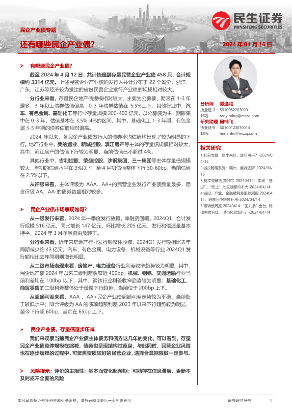 【民生证券】【20240416】民企产业债专题:还有哪些民企产业债?-23页