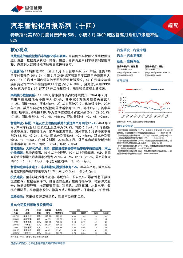 【国信证券】【20240414】汽车智能化月报系列(十四):特斯拉北美FSD月度付费降价50%,小鹏3月XNGP城区智驾月活用户渗透率达82%-74页